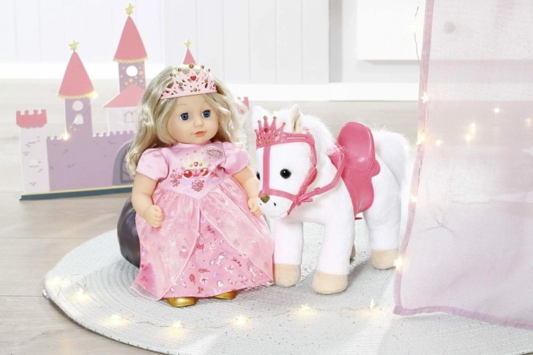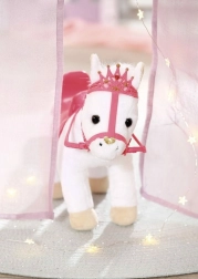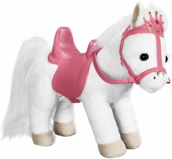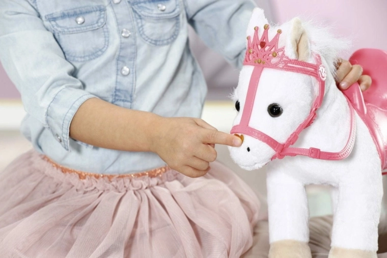 De Little Sweet pony van BABY ANNABELL is een superzachte vriend die elk spel in een prinsessenavontuur verandert. Dankzij het comfortabele zadel en het elegante hoofdstel met kroon geniet de pop van een veilige rit en beleven kinderen talloze lieve verhaaltjes.