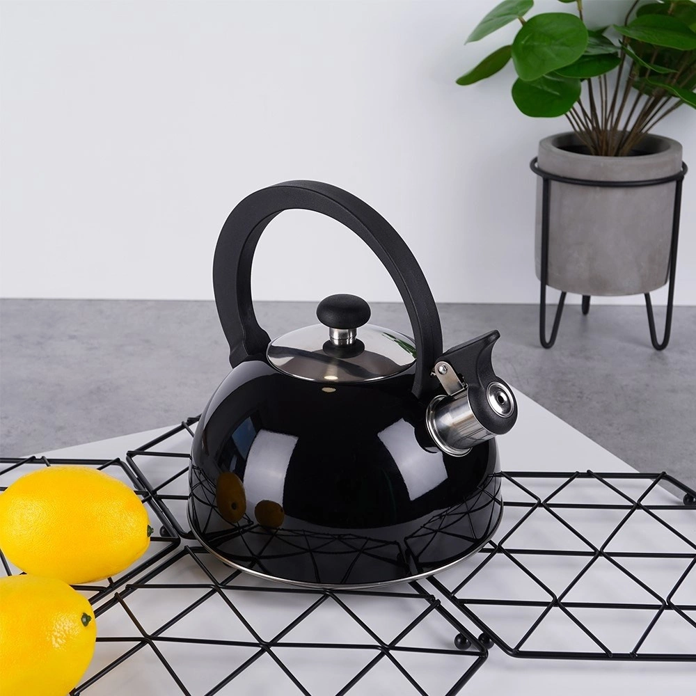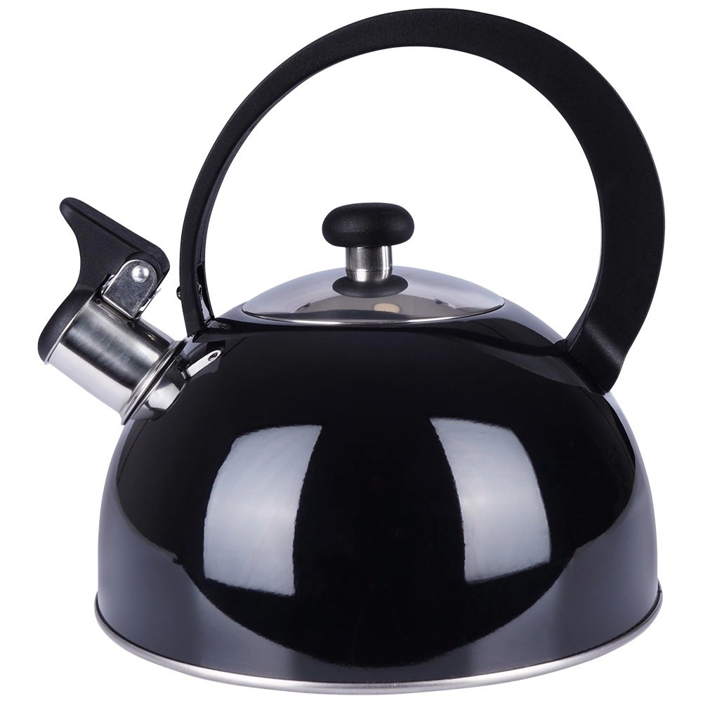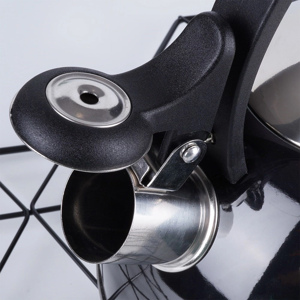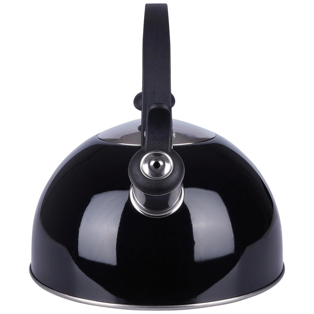 Elegante zwarte fluitketel van hoogwaardige roestvrij staal voor snel en veilig water koken. Uitstekend dankzij een modern design, universele compatibiliteit inclusief inductie en een comfortabele ergonomische handgreep. Het bruikbare volume van 1,5 l is ideaal voor de dagelijkse bereiding van thee en koffie.
