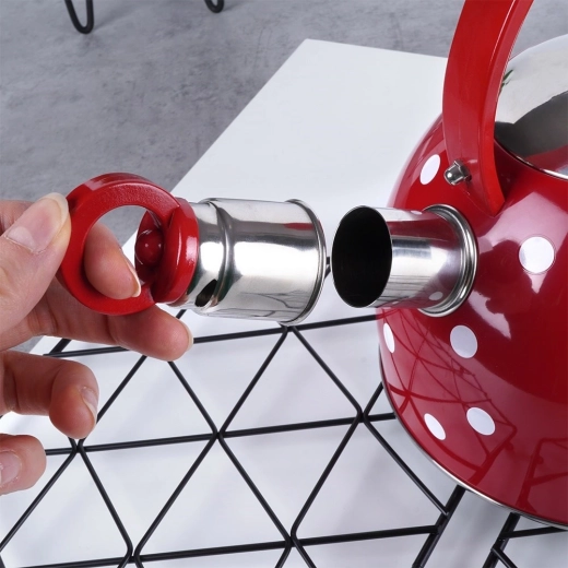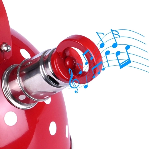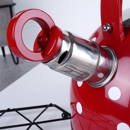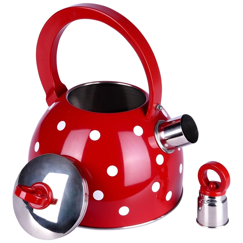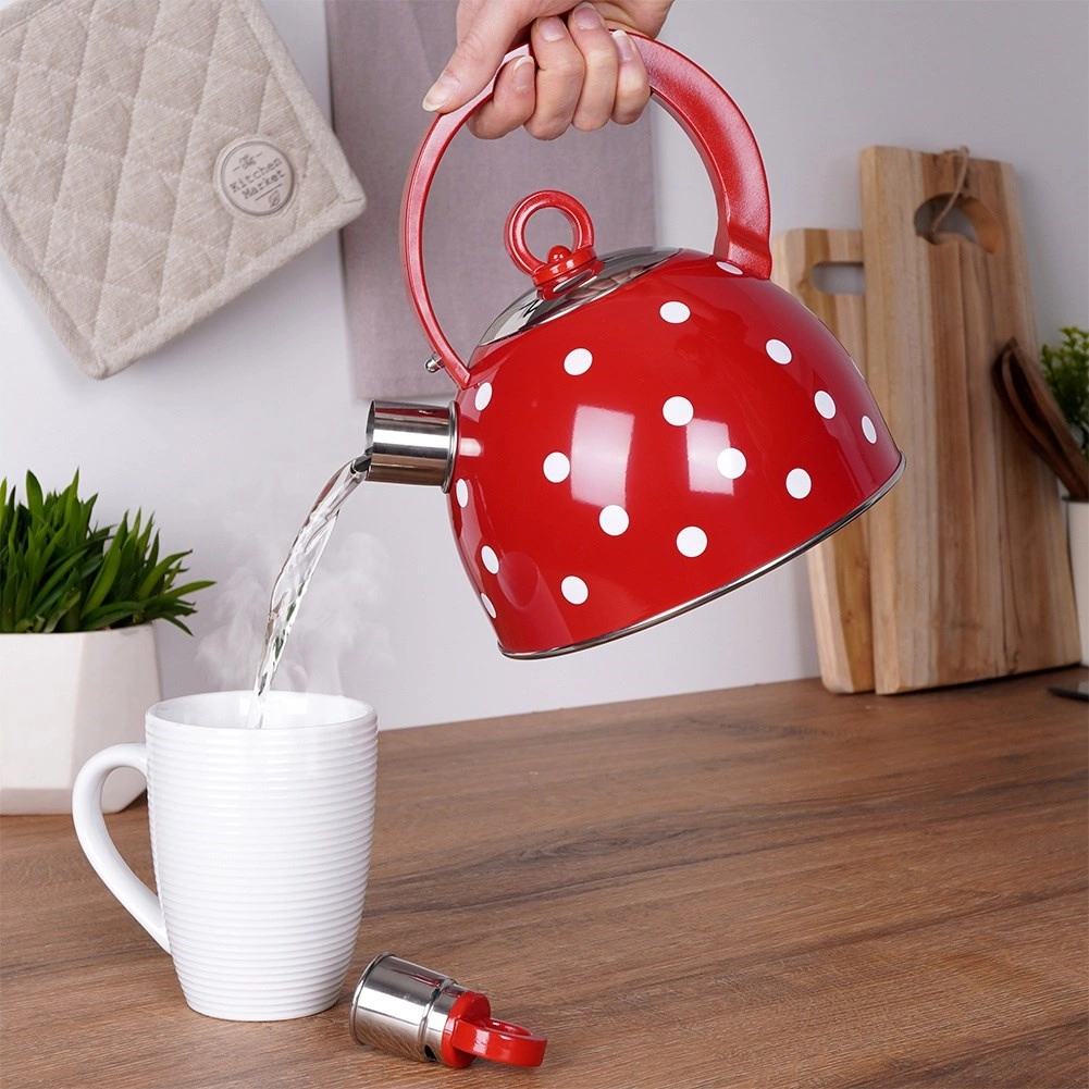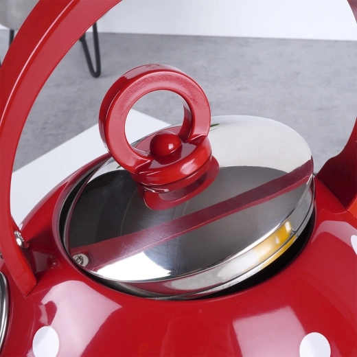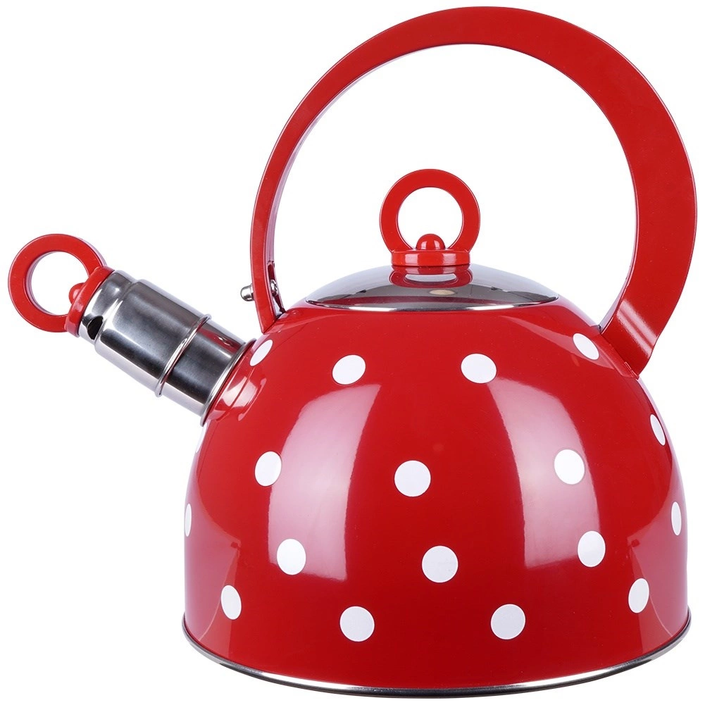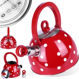 De rode uitvoering met witte stippen maakt van dagelijks water koken een plezier en geeft je keuken een originele charme.