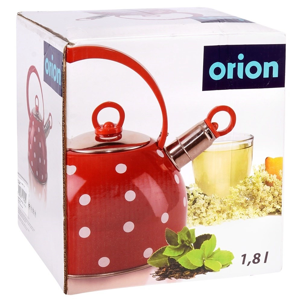 Ontdek de elegante ORION-ketel in de geliefde retrostijl. Hoogwaardig roestvrij staal zorgt voor snelle opwarming en een lange levensduur, de fluit waarschuwt betrouwbaar bij het kookpunt en de afneembare tuitafsluiter maakt schenken eenvoudig. Ideaal voor het dagelijks bereiden van thee, koffie en andere warme dranken.