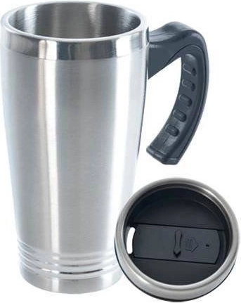 Praktische stalen thermobeker met handgreep en een inhoud van 450 ml houdt je drankje lange tijd warm of koud. Dankzij de dubbelwandige vacuümisolatie en het lekdichte deksel is hij ideaal voor onderweg, op het werk en thuis. Past in de meeste bekerhouders in de auto en de comfortabele ergonomische handgreep zorgt voor een veilige grip.