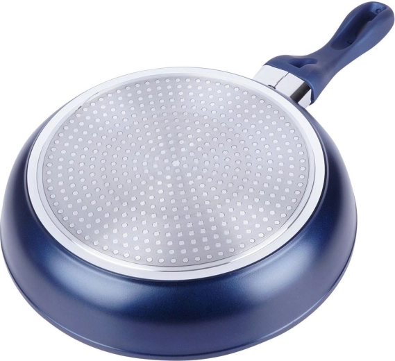 De robuuste pan met diamantcoating biedt topklasse antiaanbak en uitstekende warmtegeleiding. Dankzij de diamantdeeltjes in de keramische laag wordt warmte sneller en gelijkmatiger verdeeld, zodat je een knapperige korst en een sappige binnenkant krijgt zonder aanbranden. Het moderne donkerblauwe design geeft elke keuken een frisse look.