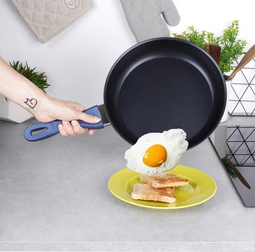 De duurzame constructie van gegoten aluminium is stabiel, massief en klaar voor intensief dagelijks koken. De pan is vrij van PFOA en PTFE, en geschikt voor vetarm bakken, stoven en het bereiden van pannenkoeken. De ergonomische handgreep met zacht siliconen ligt comfortabel in de hand en wordt niet heet.