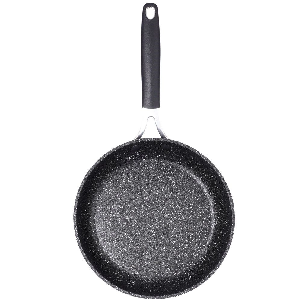 Deze granieten STONER-pan van gegoten aluminium is robuust, duurzaam en klaar voor dagelijks gebruik. Dankzij de hoogwaardige antiaanbaklaag bereidt u gezonde en smakelijke gerechten met een minimum aan olie – zonder aanbranden en met perfecte lossing van het voedsel.