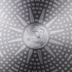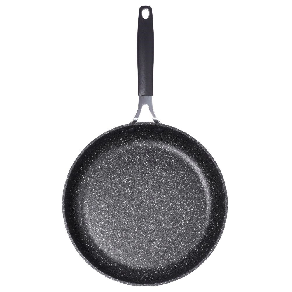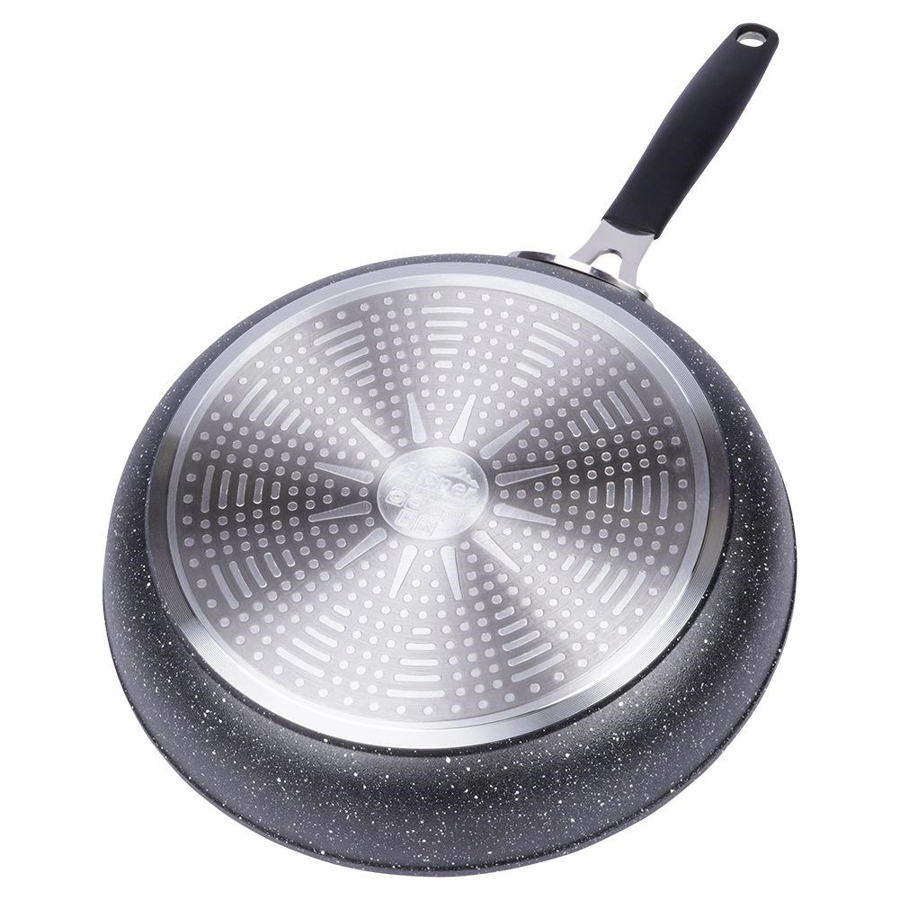 Ontdek de betrouwbare pan ORION STONER met granieten antiaanbakoppervlak, die bakken, roerbakken en stoven moeiteloos aankan. De massieve gegoten aluminium constructie warmt snel op, bespaart energie en verspreidt de warmte gelijkmatig over het hele oppervlak. Zo worden steaks, eieren en groenten mooi gaar zonder aan te branden.