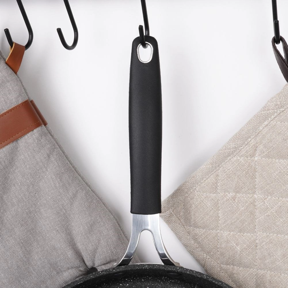 De praktische ergonomische greep ligt goed in de hand en heeft een ophangoog. De pan is compatibel met gas-, elektrische, keramische, halogeen- en inductiekookplaten en is ook geschikt voor in de oven (greep tot ca. 200 °C). Na het koken maak je haar eenvoudig schoon – het antiaanbakoppervlak is onderhoudsvriendelijk en de pan kan in de vaatwasser.