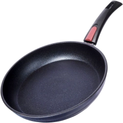 Ontdek je dagelijkse keukenhulp: een massieve pan met een diameter van 28 cm met een diamant-anti-aanbaklaag op keramische basis. Het oppervlak met diamantdeeltjes geleidt warmte uitstekend, reageert niet met voedsel en maakt betrouwbaar, gelijkmatig en energiezuinig koken mogelijk zonder aanbranden.