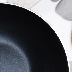 Geavanceerde keramische coating met diamantdeeltjes zorgt voor uitstekende antiaanbakeigenschappen, snelle warmteoverdracht en eenvoudig schoonmaken – ideaal voor gezond koken met minimaal oliegebruik.