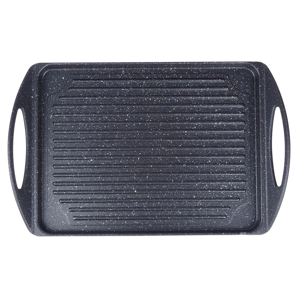 Ontdek de veelzijdige GRANDE grillplaat met een duurzame granieten antiaanbaklaag die zorgt voor snel en gelijkmatig opwarmen en aanbakken minimaliseert. Dankzij de diepe ribbels krijg je een duidelijke braadprint en wordt overtollig vet afgevoerd voor gezonder koken.