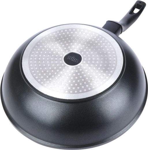 De dikke meerlagige bodem met inductieplaat verspreidt de warmte efficiënt over het hele oppervlak voor perfecte resultaten bij roerbakken en stoven.