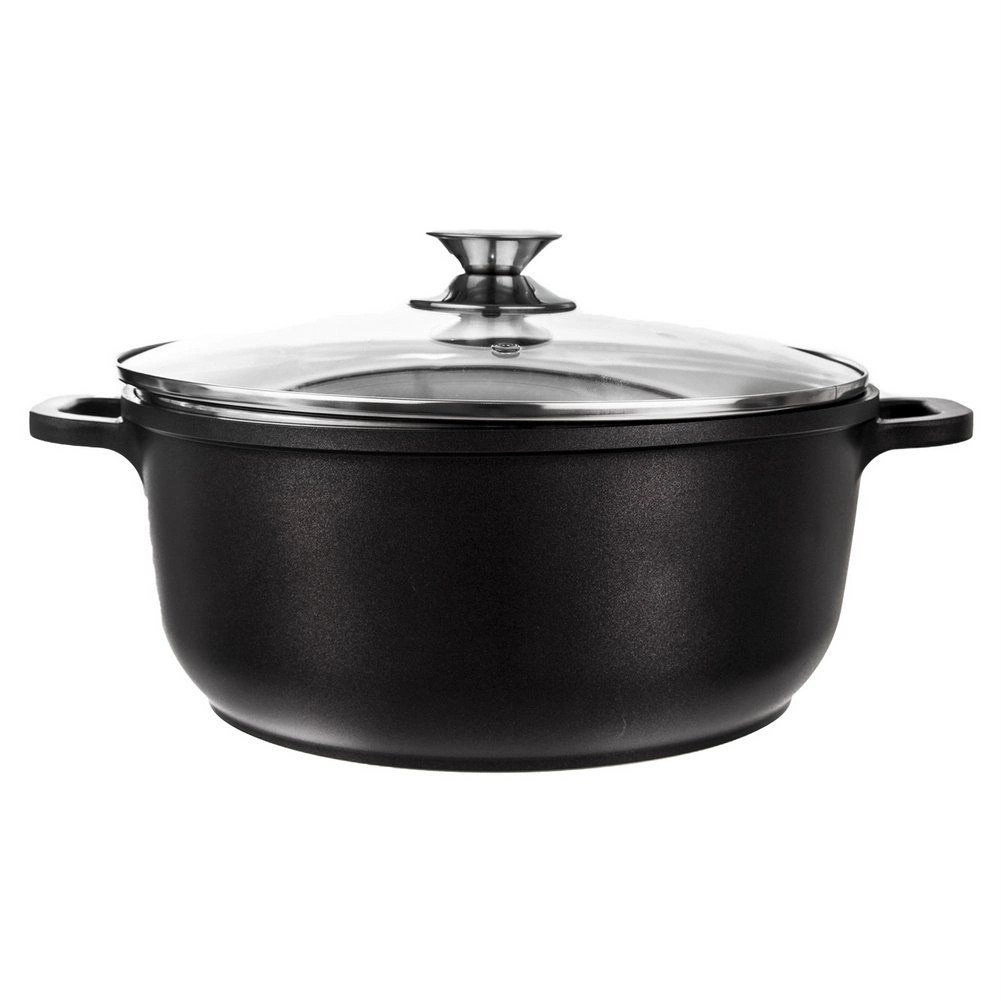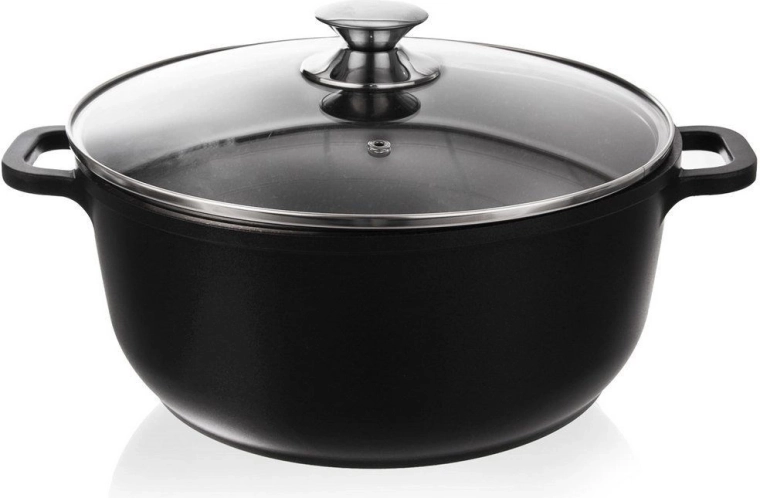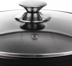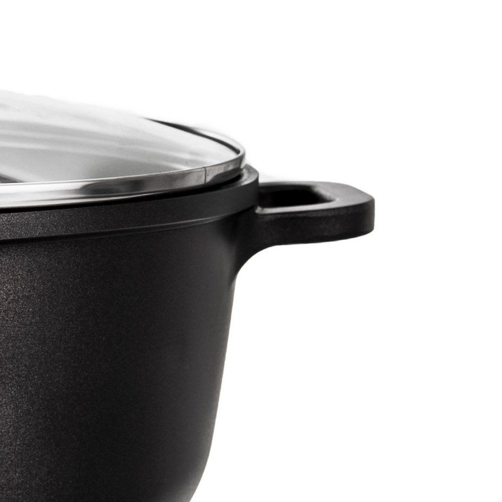 De robuuste pan GRANDE in elegante zwarte kleur is ideaal voor soepen, sauzen en eenpansgerechten. Dankzij de anti-aanbak granieten PFLUON-laag branden ingrediënten niet aan en behouden ze hun natuurlijke smaak en voedingsstoffen. Het glazen deksel met ontluchtingsventiel houdt de optimale druk en vochtigheid.