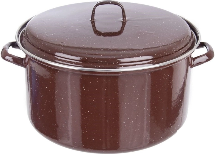 Dit universele deksel is gemaakt van hoogwaardig geëmailleerd staal in een elegante bruine kleur met een subtiel gestippeld decor. Het is geschikt voor kookgerei met een diameter van 32 cm en dankzij de stevige greep is het comfortabel te hanteren. Email is hygiënisch, veilig voor de gezondheid en ook geschikt voor mensen met allergieën.