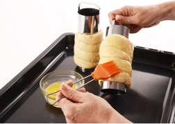 - Traditionele vorm – de vormen houden het deeg in het juiste cilindrische profiel voor een mooi gelijkmatig resultaat.