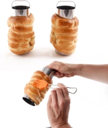 Professionele sets van twee vormen van hoogwaardig roestvrij staal zijn ideaal voor het maken van Hongaarse kürtős en Slowaakse trdelníky. Het gladde oppervlak garandeert een gelijkmatige garing en gemakkelijk losmaken van het deeg na het bakken. Je kunt ze ook gebruiken voor ander gebak, zoals heerlijke kaneelrollen.
