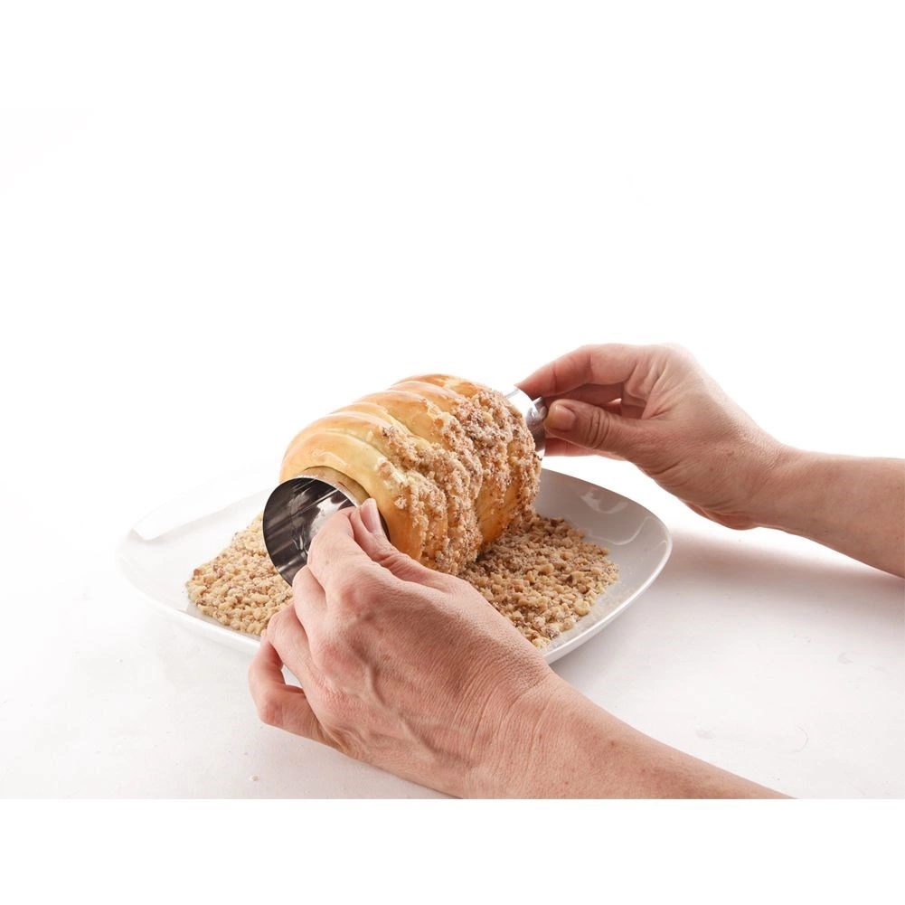 Geïntegreerde handgrepen maken comfortabel draaien tijdens het bakken mogelijk, evenals bestrijken met boter en rollen in toppings.