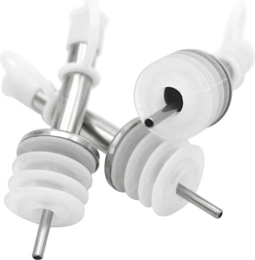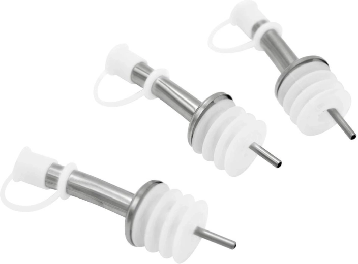Geniet van comfortabel en nauwkeurig schenken met deze universele schenktuiten, die passen op de meeste gangbare halsdiameters. De gevormde roestvrijstalen tuit zorgt voor een vloeiende, gecontroleerde doorstroom, de geribbelde flexibele stop zit stevig in de hals en het kapje beschermt de punt tegen stof.