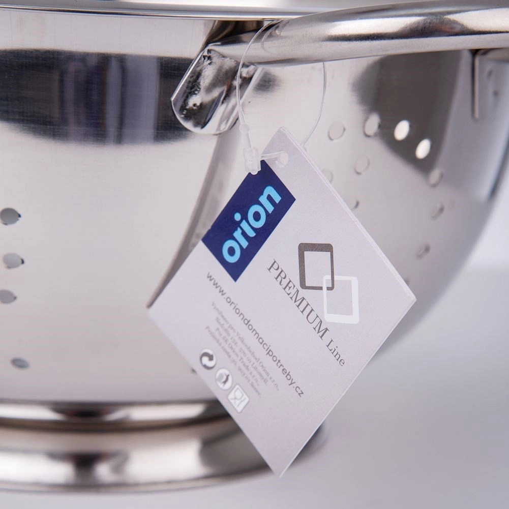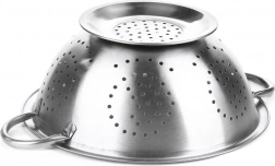 Twee comfortabele zijgrepen zorgen voor veilige hantering, terwijl de verhoogde voet de zeef stabiel houdt in de gootsteen en op het aanrecht. Dichte perforaties zorgen voor een snelle waterafvoer, zodat voedsel niet in het water blijft staan.