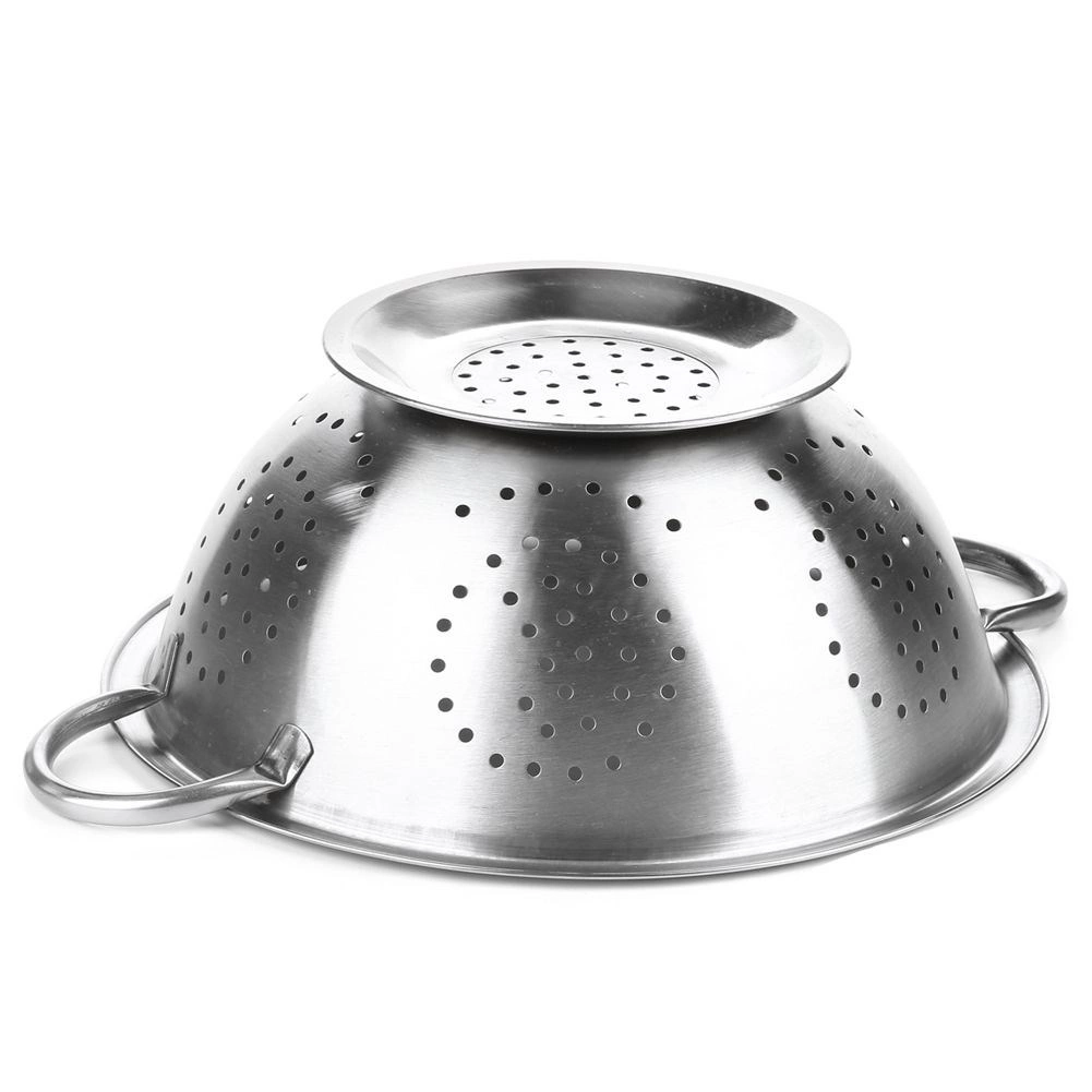 Deze ruime, komvormige zeef maakt het dagelijkse werk in de keuken makkelijker – van het afspoelen van fruit en groenten tot het afgieten van rijst en pasta. Het robuuste roestvrij staal zorgt voor een lange levensduur, corrosiebestendigheid en eenvoudig schoonmaken.