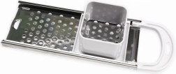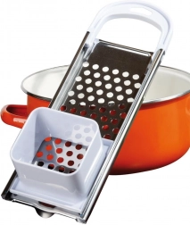 De praktische aanslag en handgreep maken het mogelijk om comfortabel direct boven de pan te raspen en te persen zonder knoeien.