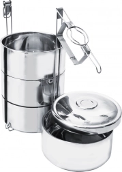 Deze 4-laagse thermo tiffin is ideaal voor dagelijks gebruik en outdooractiviteiten. Vier gescheiden containers maken het mogelijk om hoofdgerecht, bijgerecht en dessert te vervoeren zonder smaakvermenging. Dankzij de dubbelwandige constructie met vacuümisolatie behoudt het eten langer de gewenste temperatuur. Het stabiele draadframe met vergrendelende klemmen houdt alle lagen stevig bij elkaar en de bovenste handgreep vergemakkelijkt het dragen.