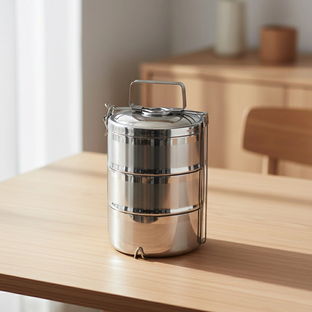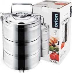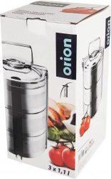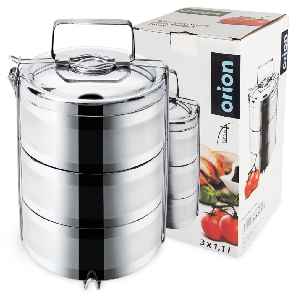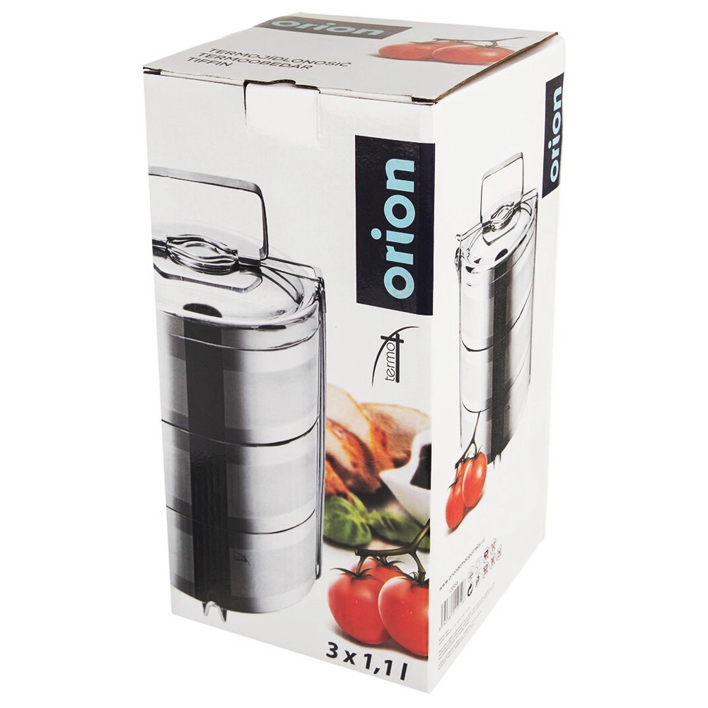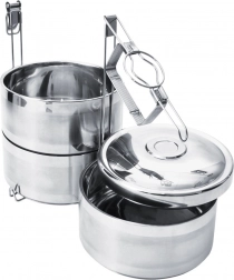Geniet overal onderweg van warme of koude maaltijden dankzij de tiffin met drie roestvrijstalen bakjes, die met behulp van het zijframe veilig tot één geheel worden verbonden. Elk bakje heeft een inhoud van 1,1 l, zodat u soep, hoofdgerecht en dessert eenvoudig kunt scheiden.