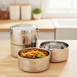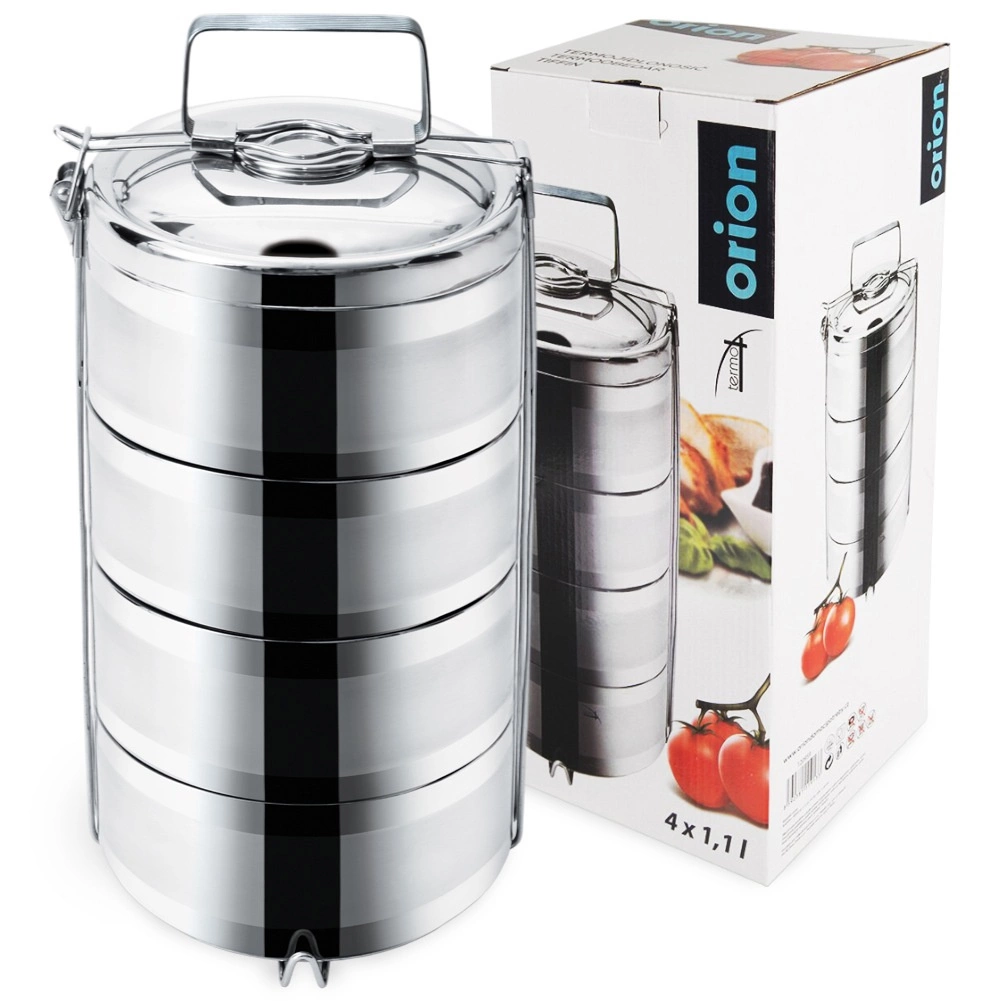De meerlaagse thermo-voedselcarrier van hoogwaardig roestvrij staal is ideaal voor het dagelijks meenemen van lunches en weekenduitstapjes. Vier aparte containers maken het mogelijk soep, hoofdgerecht en bijgerechten te scheiden, terwijl de vacuümisolatie helpt de gewenste temperatuur langer te behouden. Het stabiele frame met vergrendelende snappers en de bovenste handgreep maakt veilig transport eenvoudig.