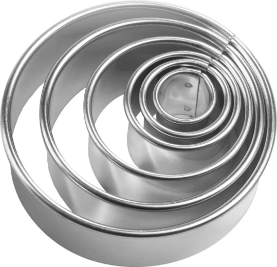 Ontdek een veelzijdige set ronde uitstekers waarmee je klassieke zandkoekjes, peperkoek en moderne raamkoekjes maakt. Dankzij vijf maten creëer je moeiteloos opvallende meerlagige vormen, mini-sandwiches of decoraties van fondant. Hoogwaardig roestvrij staal zorgt voor een lange levensduur en een precieze snede.