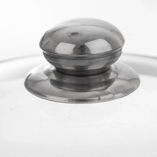 De stevige roestvrijstalen rand zorgt voor een dichte passing en stabiliteit, de metalen knop biedt een zekere grip.