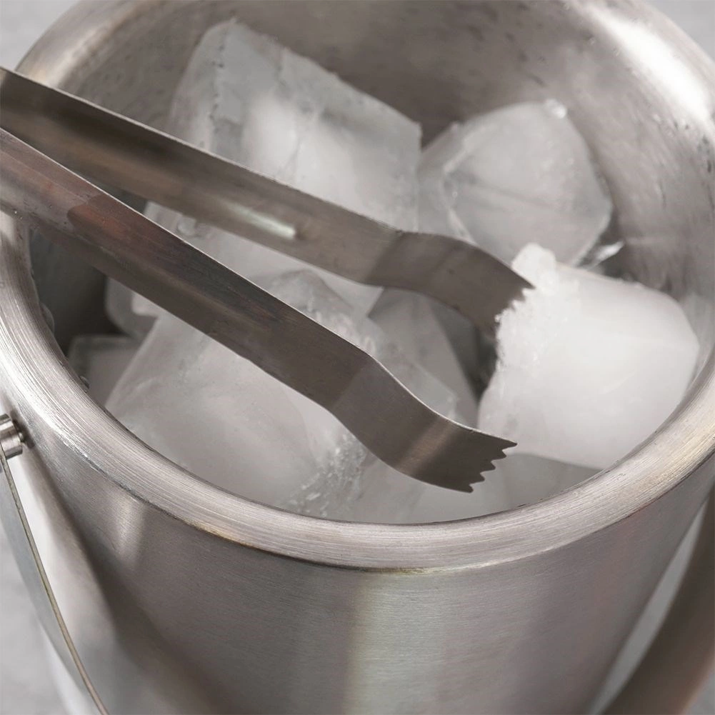 De set wordt aangevuld met roestvrijstalen tang met getande bek voor eenvoudig en hygiënisch scheppen van ijs in drankjes. De emmer is ideaal voor wijn, mousserende wijn, cocktails en frisdrank – thuis, in hotels en in restaurants.