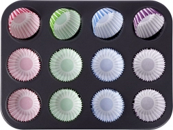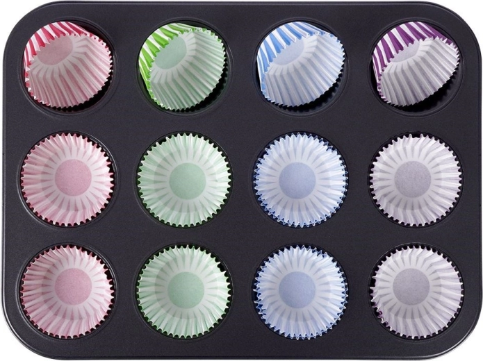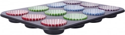 De vorm is ideaal voor zowel zoet als hartig bakken – muffins, cupcakes, koekjes, mini quiches of andere hapjes. Papieren vormpjes beschermen de vorm tegen vervuiling en vereenvoudigen de schoonmaak; bovendien is de vorm geschikt voor de vaatwasser. Gemaakt van materialen die veilig zijn voor contact met voedsel volgens Europese normen.