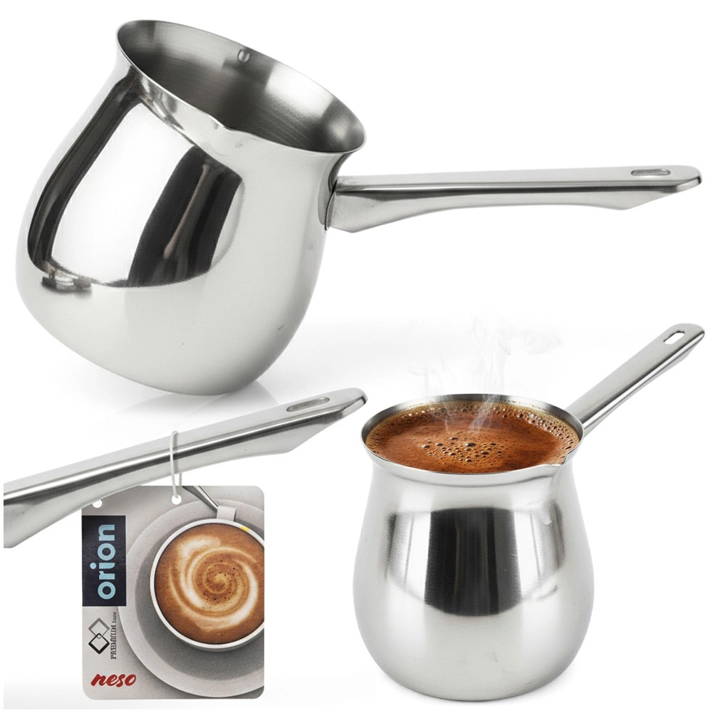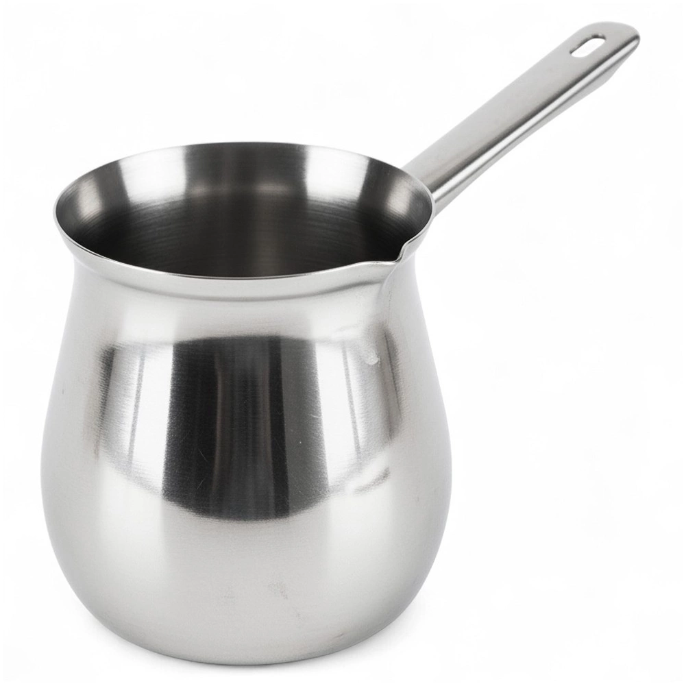 Ontdek het eenvoudige en geurige koffiezetten alsof je in een café bent. De roestvrijstalen cezve met een inhoud van 400 ml is ideaal voor Turkse koffie, maar ook voor het verwarmen van melk en andere dranken. Hoogwaardig RVS garandeert een lange levensduur, eenvoudig onderhoud en een elegante uitstraling die in elke keuken past.