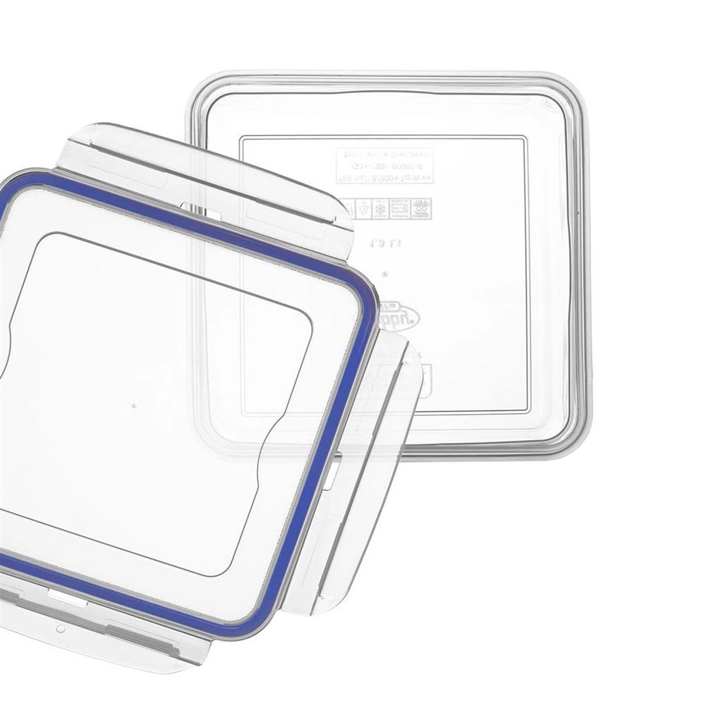 Praktische vierkante bak (10 × 10 × 6 cm) van hoogwaardige transparante kunststof die je voedsel langer vers houdt dankzij de siliconen afdichting en vier vergrendelclips. Perfect voor dagelijks gebruik thuis, op het werk en onderweg – zonder zorgen over lekken.