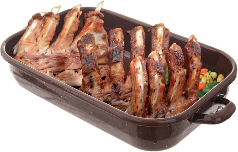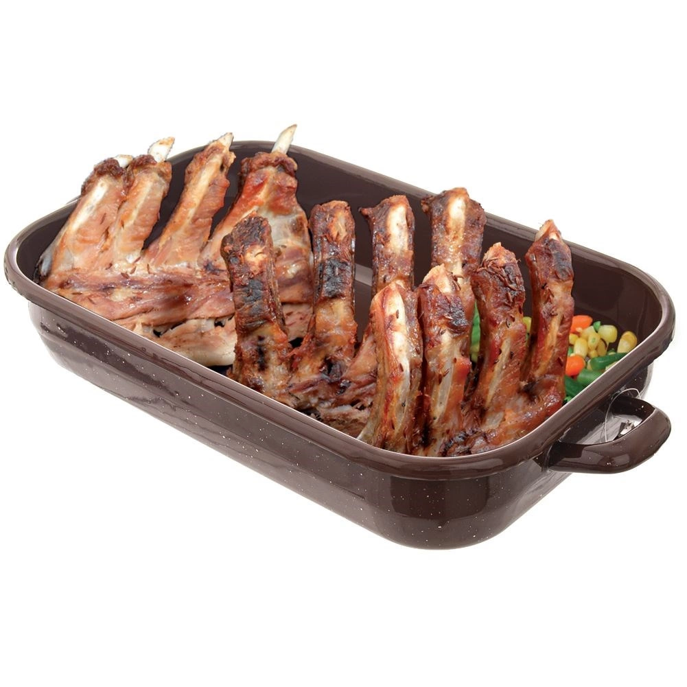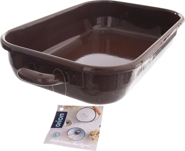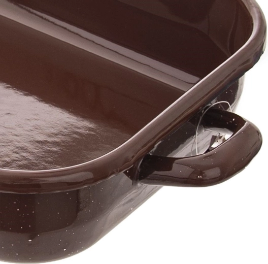 Deze duurzame rechthoekige braadslede van hoogwaardige staal met geëmailleerd oppervlak is perfect voor dagelijks koken en feestelijk braden. Email is gezondheidsvriendelijk en geschikt voor allergiepatiënten. De buitenafmetingen 34 × 18,5 × 6,5 cm en de binnenafmetingen 26 × 16 × 6 cm bieden voldoende ruimte voor de bereiding van diverse gerechten.