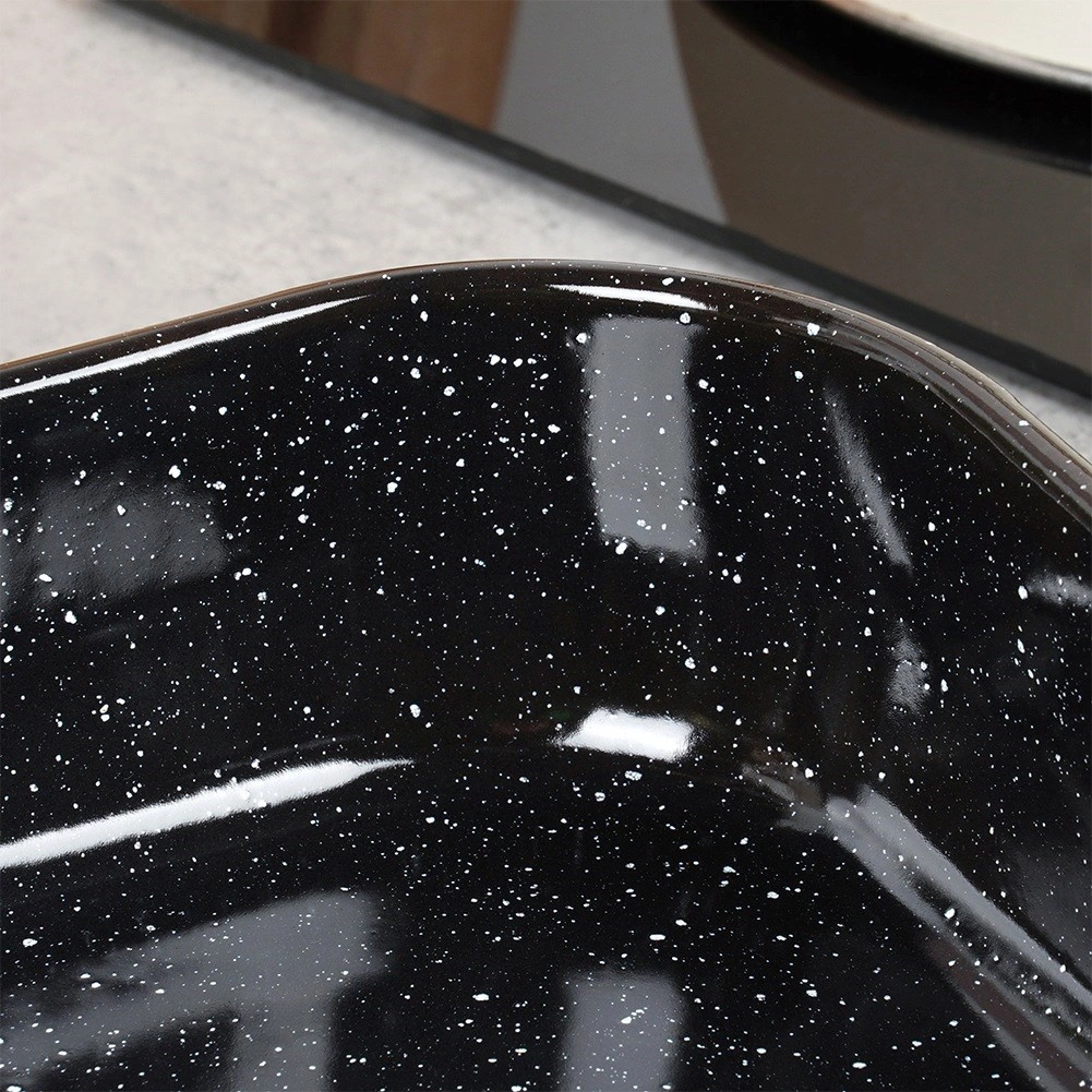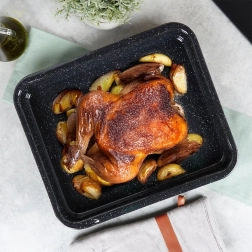 Dankzij de hoge randen en doordachte afmetingen is hij perfect voor sappig braden zonder spatten. Eenvoudig onderhoud bespaart tijd – even afspoelen of in de vaatwasser plaatsen. Kleine, natuurlijke productienuances in het email (bijv. lichte golfjes of puntjes) zijn typisch voor traditionele afwerking en beïnvloeden de functionaliteit niet.