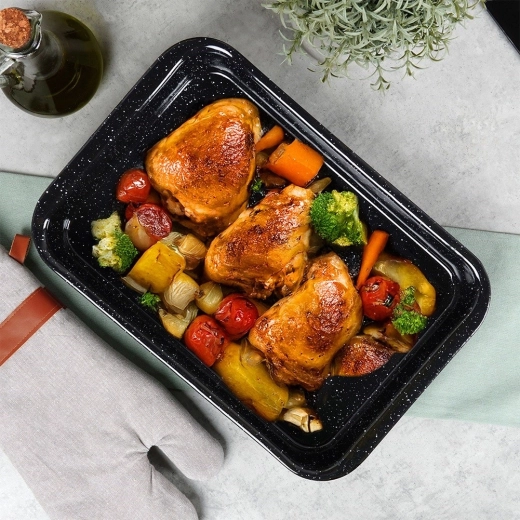 Perfect voor het bereiden van alle soorten vlees, groentemixen, taarten en pizza met hoge rand. Emaille is veilig voor de gezondheid en geliefd om zijn lange levensduur. Natuurlijke productiekenmerken van emaille (bijv. kleine oneffenheden) hebben geen invloed op de functionaliteit of de kwaliteit van gerechten en benadrukken het traditionele vakmanschap.