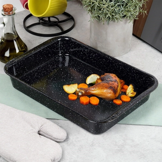Deze geëmailleerde braadslede levert betrouwbare prestaties voor dagelijks koken en feestelijk bakken. Dankzij de hoge randen blijven sappen behouden en wordt een gelijkmatige garing gegarandeerd. Het geëmailleerde oppervlak is glad, duurzaam en eenvoudig te onderhouden, waardoor na het bakken minimale inspanning nodig is.