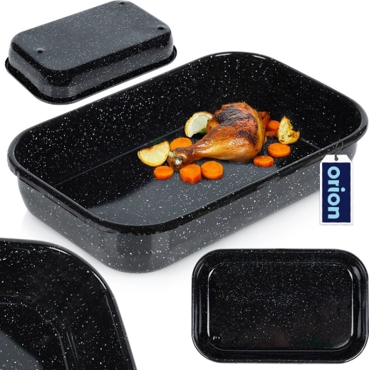 De geëmailleerde braadslede ORION in elegant zwart is duurzaam, veelzijdig en klaar voor dagelijks gebruik in de oven. Dankzij de hogere randen worden sappen en vetten uitstekend vastgehouden, wat zorgt voor gelijkmatig garen en comfortabel serveren rechtstreeks van de oven naar tafel.