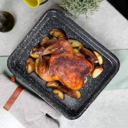 Hoge randen en een gelijkmatige warmtegeleiding zijn perfect voor sappige braadstukken, aardappelen en gegratineerde gerechten.
