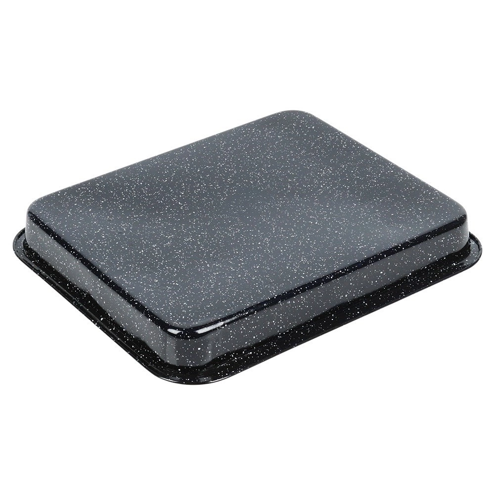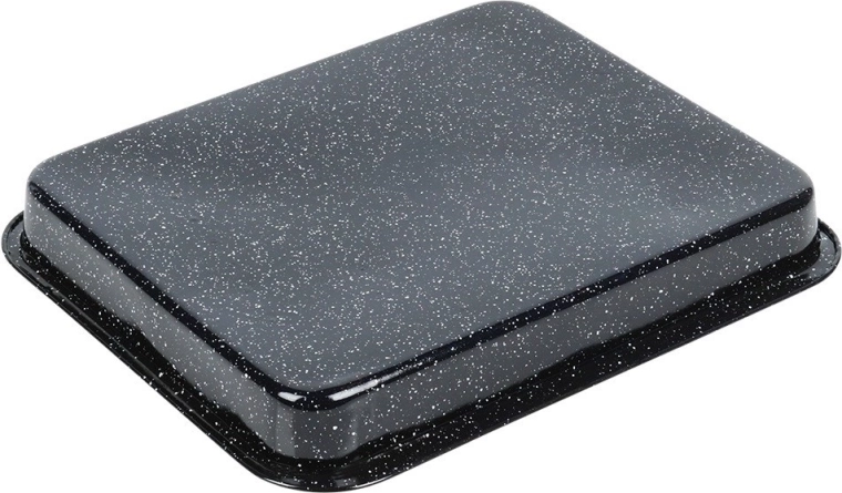 Geëmailleerd metaal in het zwart is duurzaam en vaatwasmachinebestendig. Praktische afmetingen voor dagelijks koken.