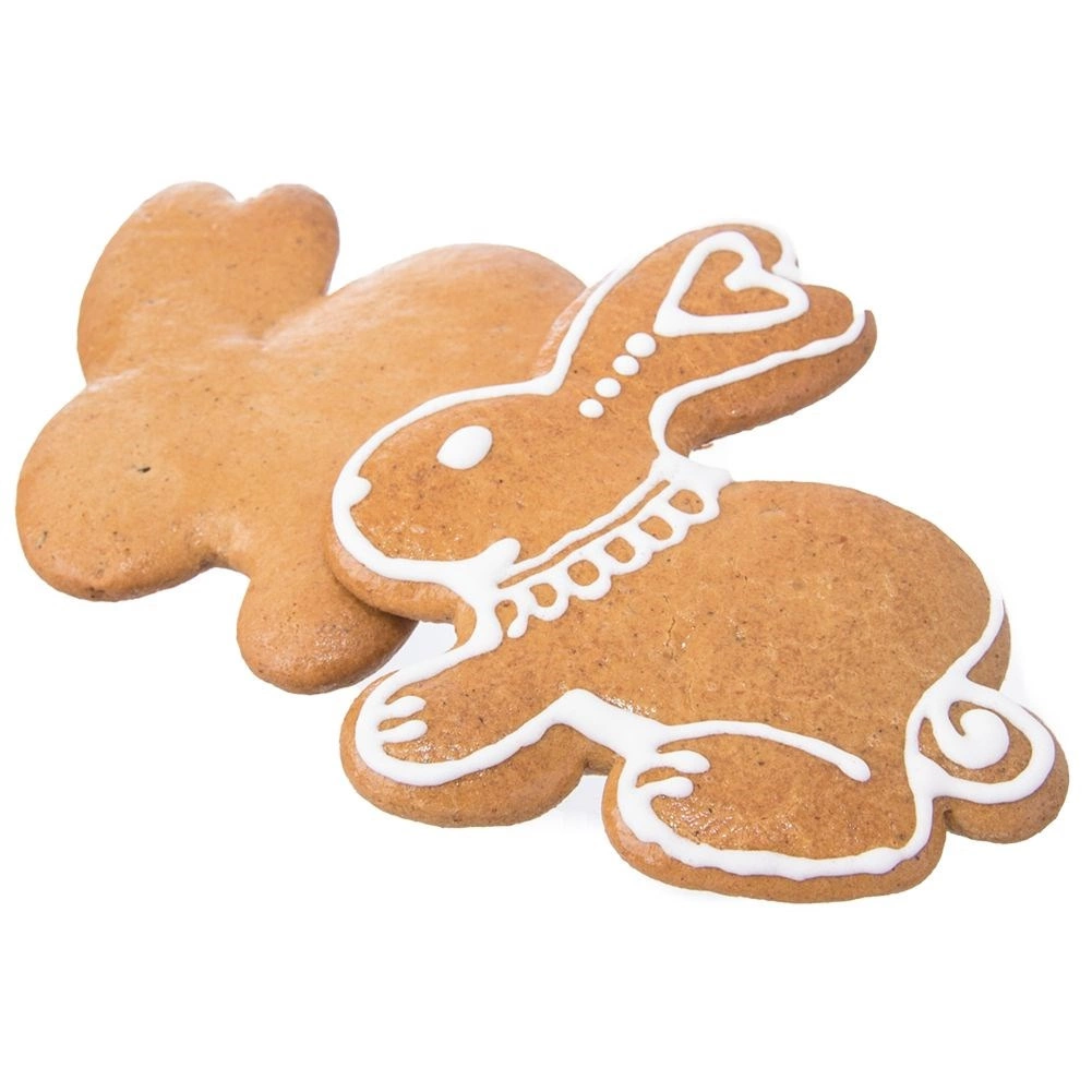 Praktische banketbakkers-uitsteekvorm in de vorm van een haasje voor het eenvoudig maken van koekjes en peperkoek. Van hoogwaardig roestvrij staal, duurzaam en hygiënisch, ook geschikt voor de vaatwasser. Veelzijdig te gebruiken voor deeg, fondant, maar ook voor sandwiches en zacht fruit. Afmetingen 10 × 9,5 × 2,1 cm.