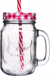 Deze glazen beker in mason jar-stijl combineert praktische details met een aantrekkelijke look. Dikwandig glas zorgt voor duurzaamheid, het schroefbare metalen deksel voorkomt morsen en vuil, en het rietje maakt comfortabel drinken mogelijk. Ideaal voor homemade limonade, smoothies, sappen en verfrissende drinks met ijs.