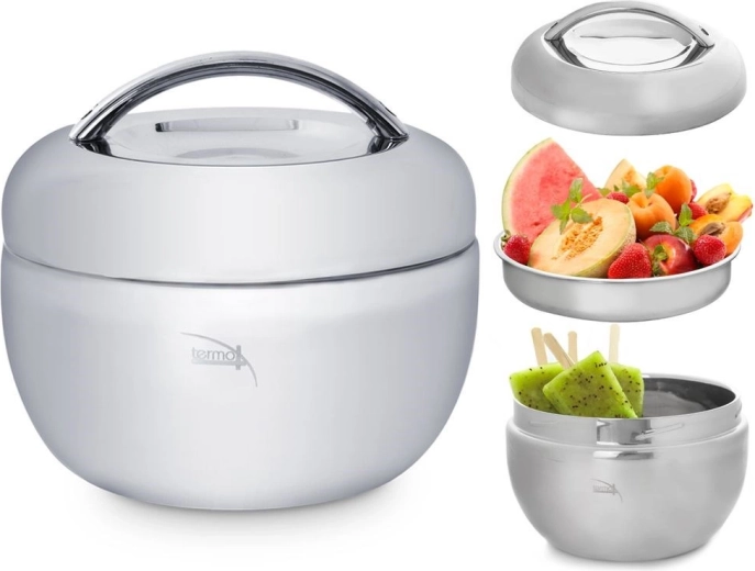 De buitenste thermokom, de uitneembare binnenkom en het deksel met handvat houden gerechten langer warm of koud – ideaal voor soepen, bijgerechten en desserts.