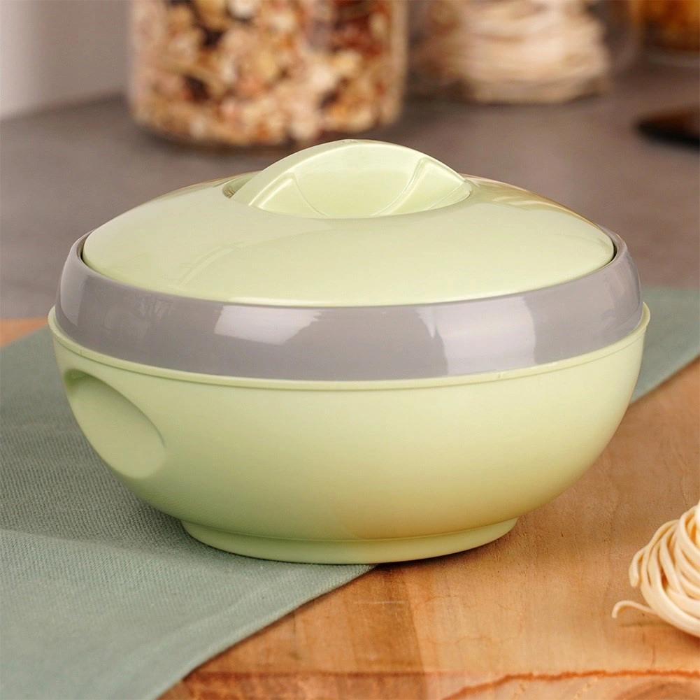 Het deksel sluit door draaien (schroeven), wat het gebruiksgemak verhoogt. De thermoschaal is niet 100% lekdicht – bewaar bij het vervoeren van vloeibaardere gerechten in verticale stand. In de zomer geschikt voor het serveren en bewaren van ijs, in de winter voor soepen, sauzen en hoofdgerechten. Voor een sterker effect kunt u de schaal voor gebruik voorverwarmen met heet water of vooraf koelen in de koelkast.