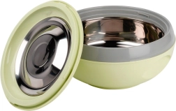 Het deksel sluit met een eenvoudige draai en de geïntegreerde handgreep maakt dragen gemakkelijk. De schaal houdt warmte tot 2 uur vast; voor een langer effect verwarm je de binnenkant 1–2 minuten voor met heet water. In de zomer is hij ook geschikt voor gekoelde desserts en ijs – voor betere koeling de schaal vooraf in de koelkast laten afkoelen.