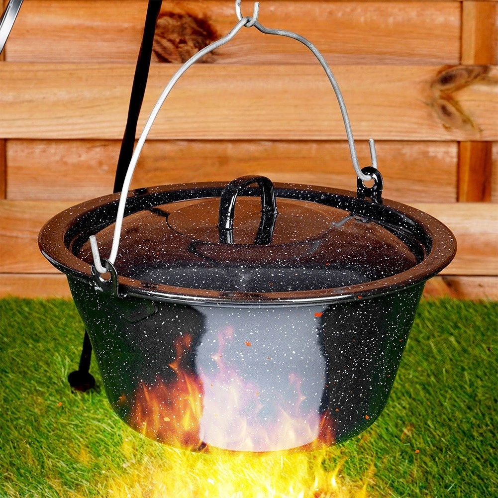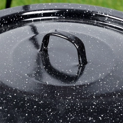 Dit geëmailleerde deksel is de ideale aanvulling voor buitenkoken in een ketel – van goulash tot soepen. Het past op Hongaarse ketels van 9,5 l en houdt dankzij de gebogen vorm effectief warmte en vocht vast, waardoor de kooktijd wordt verkort en de uiteindelijke smaak wordt verbeterd.