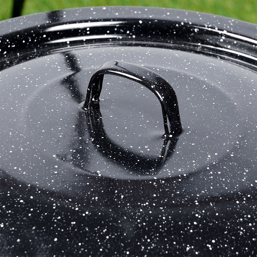 De zwarte geëmailleerde afwerking is hygiënisch, gemakkelijk te reinigen en bestand tegen krassen en roest – ideaal voor veeleisende outdooromstandigheden.