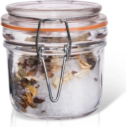 Praktische glazen pot met beugelsluiting en rubberen afdichting, inhoud 220 ml, ideaal voor dagelijks gebruik in de keuken. Geschikt voor kruiden, zoete en hartige lekkernijen of klein fruit. Dankzij het stevige glas en de hoogwaardige metalen klem is hij duurzaam, lucht- en lekdicht en houdt hij je etenswaren langer vers.