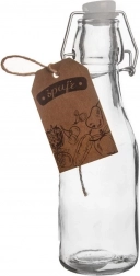 Deze elegante glazen fles met beugelsluiting is ideaal voor dagelijks bewaren en serveren van oliën, azijnen, huisgemaakte dranken en siropen. Het heldere glas presenteert de inhoud fraai, inclusief aromatische toevoegingen zoals kruiden, knoflook of chili.
