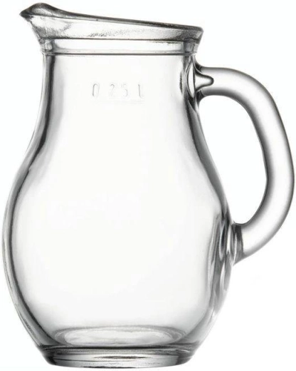 Elegante glazen kan met een inhoud van 250 ml met een praktische schenktuit en comfortabel handvat, ideaal voor melk, room, wijn, sappen, water en sauzen. Gemaakt van dik helder glas, geschikt voor de vaatwasser en koelkast, met een maximale bestendigheid tot 60 °C.