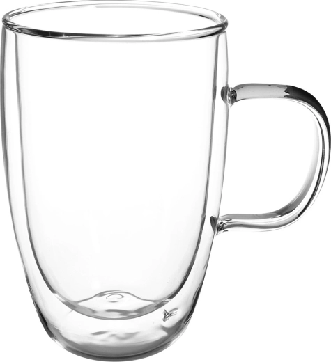 Elegant thermoglas met dubbele wand met een inhoud van 430 ml, ideaal voor latte, koffie en thee. Het borosilicaatglas isoleert uitstekend, houdt je drankje langer heet of koud en de buitenwand blijft aangenaam koel. Het glas heeft een licht ontwerp met een comfortabele oor en een moderne uitstraling, waardoor dranken uitzonderlijk fraai ogen.